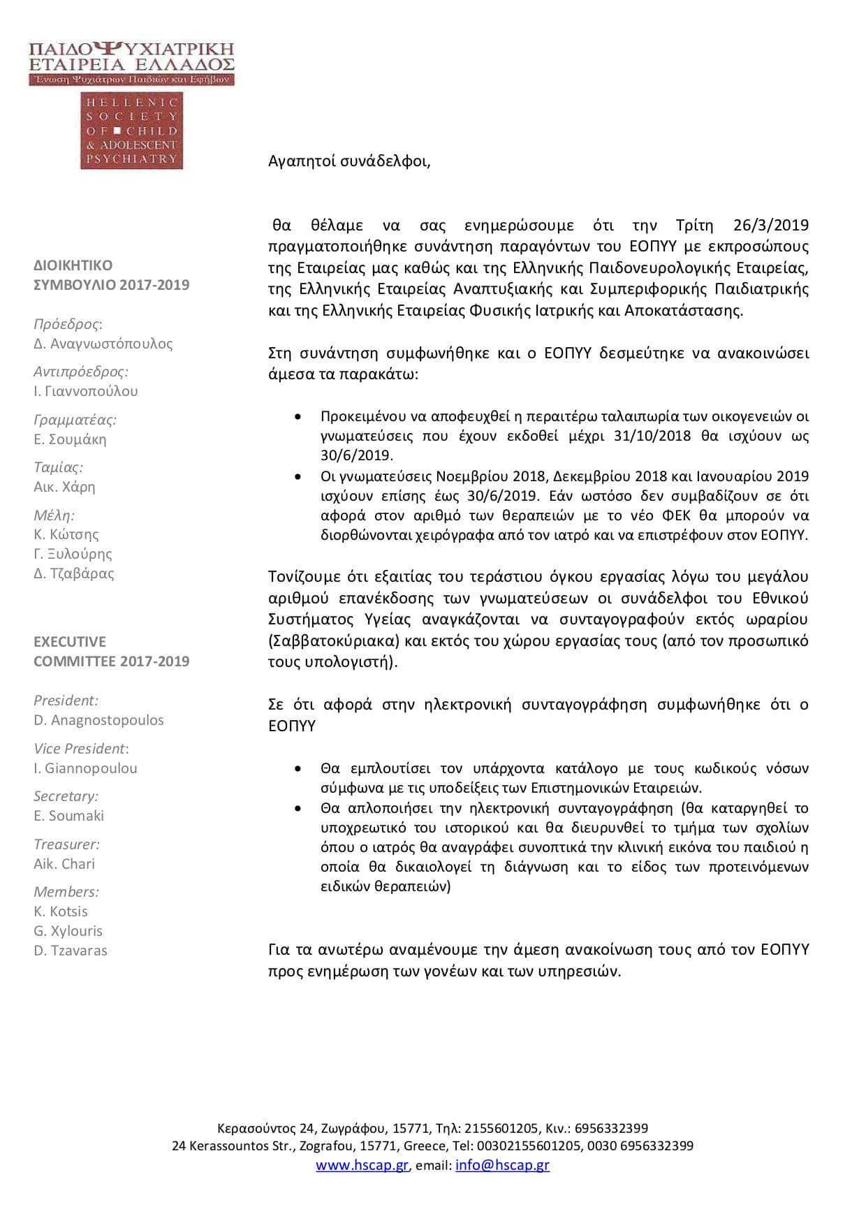 Ενημέρωση για ΕΟΠΥΥ από την Παιδοψυχιατρική Έταιρεία Ελλάδος
